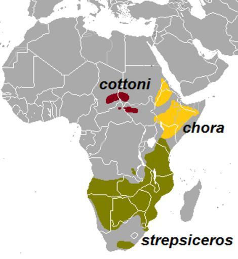 Keywords: Tragelaphus strepsiceros.png en Range map of the Greater Kudu Tragelaphus strepsiceros with distinctive colors for the four subspecies 1 strepsiceros 2 zambesiensis 3 chora and 4 cottoni own Altaileopard 2012-02-24 References LOUISE GRAU NERSTING and PETER ARCTANDER Phylogeography and conservation of impala and greater kudu Molecular Ecology 2001 10 711 “719 2001 Blackwell Science Ltd IUCN SSC Antelope Specialist Group 2008 Tragelaphus strepsiceros In IUCN 2011 IUCN Red List of Threatened Species Version 2011 2 <www iucnredlist org> Downloaded on 24 February 2012 Jonathan Kingdon The Kingdon Field Guide to African Mammals A C Black Publishers London 1997 2007 ISBN 978-0-7136-6513-0 476 Seiten S 360 f Tragelaphus strepsiceros Cc-zero |