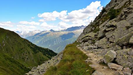 Keywords: trail landscape mountains away view alpine nature panorama sky outlook clouds