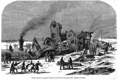 | Keywords: Train Crash Cerhovice 1868 Chalupa.jpg Train crash on Bohemian Western Railroad near the village of Újezd probably around present-day train stop Cerhovice on the route from Plzeň to Prague It happened on 10 November 1868 around 6 am A passenger train carrying Hungarian and Slovak soldiers home from an excercise in Plzeň was stopped by deep snow on the tracks It was followed by a cargo train loaded by coal that failed to stop and crashed into the passenger train from the back Four passenger cars were demolished killing 22 soldiers on the spot and injuring 60 others 13 of which died later The 22 first victims were buried in a mass grave at the cemetery in Cerhovice on November 13 Written according to a news article in Czech http //kramerius nkp cz/kramerius/handle/ABA001/8574252 http //kramerius nkp cz/kramerius/handle/ABA001/8574251 SvÄ›tozor year 1868 issue 47 digitized by Czech Academy of Science link points to National Library in Prague a more stable server Painted 11 November 1868 Published 20 November 1868 FrantiÅ¡ek Chalupa 1828 - 1887 PD-old FrantiÅ¡ek Chalupa SvÄ›tozor Cerhovice Railway line Beroun - Plzeň 1868 in Bohemia Kingdom of Bohemia 1867 “1918 Rail transport accidents in the Czech Republic Railway accidents in the 1860s |