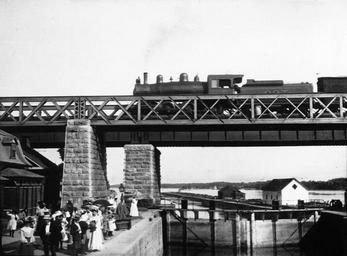 | Keywords: Train crossing bridge over canal, Ste. Anne de Bellevue, QC, 1904.jpg en Photograph Train crossing bridge over canal Ste Anne de Bellevue QC 1904 Herbert Wallis Silver salts coloured ink on glass - Gelatin silver process - 6 x 8 cm fr Photographie Train franchissant le pont au-dessus du canal Sainte-Anne-de-Bellevue QC 1904 Herbert Wallis Gélatine argentique 6 x 8 cm MP-0000 27 328 1904 Herbert Wallis Sainte-Anne-de-Bellevue Canal 1904 in Montreal Freight trains in Quebec Grand Trunk Railway PD-old |