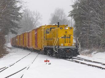 Keywords: train locomotive cars winter snow ice landscape forest trees woods nature outside country countryside snowing