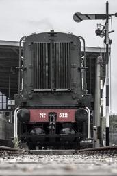 | Keywords: train machine rails track vintage old transport railway train track tracks blocked iron large colossal mighty tough robust diesel diesel train dutch dutch railways dutch train front museum railway museum black white black white red monstrosity sein sleepers |