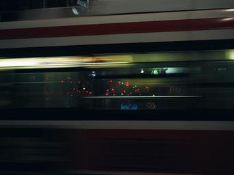 Keywords: train moving transportation railway railroad speed motion fast blur public velocity reflection bar lights