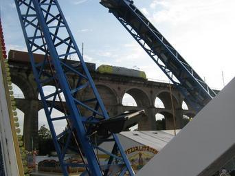 MAKE A MEME View Large Image Train on Bietigheim Viaduct seen from Ferris wheel1.JPG en A train on Bietigheim viaduct photographed from Ferris wheel on Bietigheim Horsemarket 2010 own Zonk43 2010-09-03 Pferdemarkt Bietigheim 2010