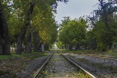Keywords: train path railway green rails