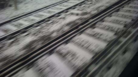 Keywords: train pathways snow trains path train tracks horizon traveling