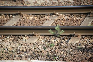 Keywords: train rail railway train tracks traveling distance zen survival pine tree