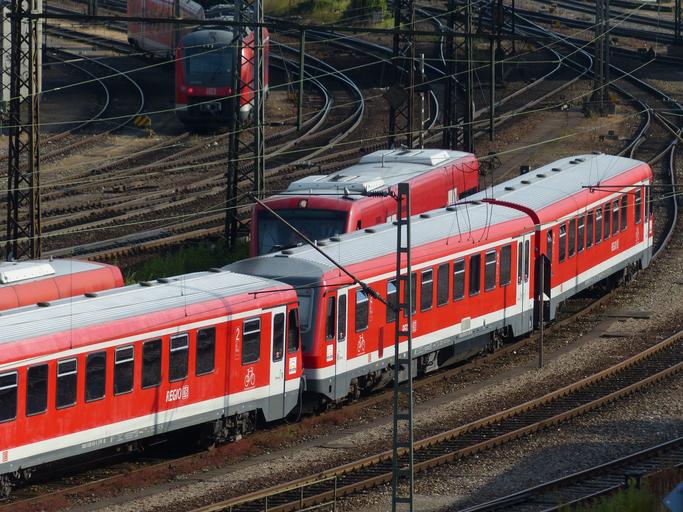 Keywords: train railway rail traffic seemed red train car wagons locomotive gleise electric locomotive loco transport remote traffic movement passengers