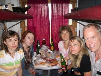 | Keywords: Train ride L'viv to Kaminetz Podilskiy, Ukraine; Platzkart (3rd class sleeping wagon) Aug 2006.JPG Ukraine has inexpensive old-style trains Windows open tea is made in coal-fired boilers in each wagon tracks are old and it takes over night to get from one main city to next Great way to relax and socialize and see the countryside towns and city centres and to meet the real local people own 2006-08 Hannum7 my own Couchette cars of Ukraine People on trains | ||||