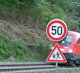 Keywords: train speed seemed railway note warnschild gleise red rail traffic loco electric locomotive movement risk