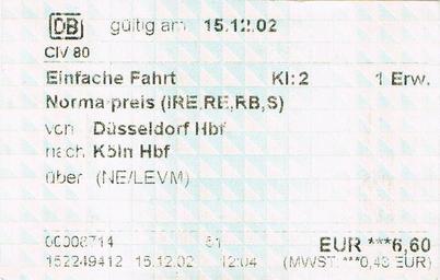 | View Original: | Train ticket DB Düsseldorf - Köln 2002.jpg (980x625) | |||