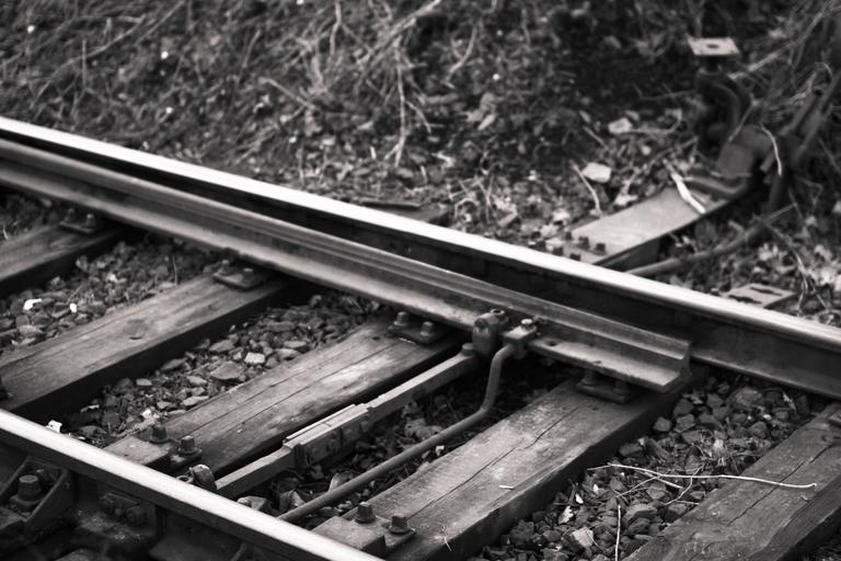 Keywords: train tracks railroad railway transportation black and white