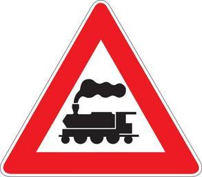 Keywords: train warning crossing guarded drive car safety road information driving sign symbol