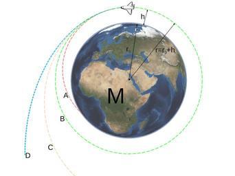 | Keywords: Trajectories.svg no Forskjellige baner en gjenstand kan få basert på utgangshastigheten <br/> A Gjenstanden faller mot i dette tilfellet jordoverflaten <br/> B Gjenstanden får en fast omløpsbane rundt jordkloden sirklingsfart omløpshastighet <br/> C Gjenstanden har for høy hastighet til å gå inn i en umiddelbar omløpsbane men ikke høy nok til å overvinne tyngdekraften fra jordkloden og vil etter hvert gå inn i en høyere omløpsbane <br/> D Gjenstanden har høy nok hastighet til å overvinne jordklodens tyngdekraft unnslippingsfart en Different trajectories an object can get based on the initial velocity <br/> A The object falls towards the ground in this case the Earth <br/> B The object gets into a stationary orbit around the Earth orbital speed/velocity <br/> C The object has too high velocity to go into a stationary orbit at the same altitude but too low velocity to leave the Earth's field of gravity and will eventually fall into an orbit at a higher altitude <br/> D The object has high enough velocity to leave the Earth's field of gravity escape velocity 2012-02-06 Space shuttle based on File Shuttle svg<br/> Earth image from Nasa World Wind<br/> Remainder Own work User Laniala Custom license marker 2012 02 06 Uploaded with UploadWizard Ballistics |