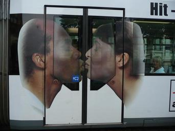 Keywords: Tram Bremen 03.jpg en Tram in Bremen Germany Own Immanuel Giel 2009-05 Tram doors in Bremen Cross-cultural couples Public art in Bremen 2009 in Bremen