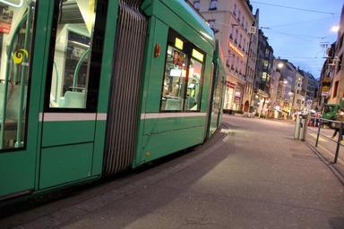 Keywords: tram traffic public means of transport basel barfusserplatz road downtown