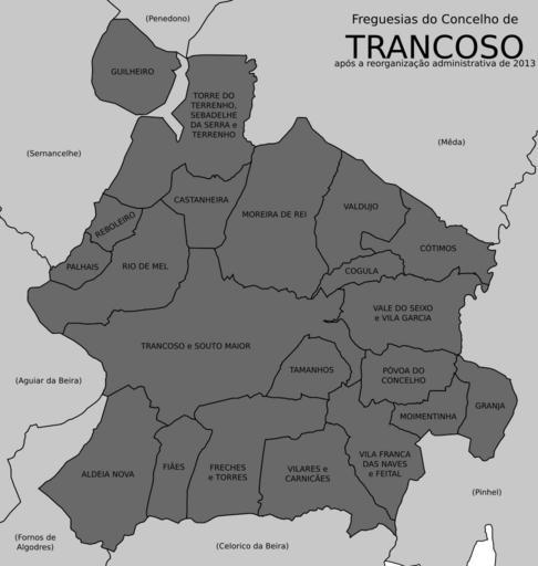 | Keywords: Trancoso freguesias 2013.svg pt Freguesias do concelho de Trancoso Fontes Diário da República Reorganização administrativa do território das freguesias Lei n º 11-A/2013 de 28 de janeiro Direcção-Geral do Território Carta Administrativa Oficial de Portugal CAOP versão 2013 Continente http //www dgterritorio pt/ficheiros/cadastro/caop/caop_download/caop_2013_0/caop2013cont_zip_2 en Civil parishes in the municipality of Trancoso Portugal Sources Diário da República Administrative reorganization of the civil parishes' territory Law n 11-A/2013 from 28th January Direcção-Geral do Território Official Administrative Chart of Portugal CAOP version 2013 Mainland http //www dgterritorio pt/ficheiros/cadastro/caop/caop_download/caop_2013_0/caop2013cont_zip_2 2014-04-28 13 01 59 own Gazilion cc-zero Uploaded with UploadWizard Trancoso SVG maps of freguesias in Portugal |