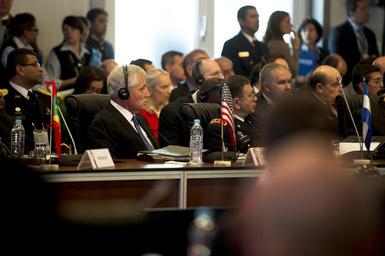 | Keywords: Translation Bureau.jpg en Secretary of Defense Chuck Hagel uses a headset to listen to a translation of Peruvian President Ollanta Humala making opening remarks at the opening plenary session of the11th Conference of the Defense Ministers of the Americas in Arequipa Peru Oct 13 2014 Released Photo by Master Sgt Adrian Cadiz http //www portedeurope org Ubersetzungsburo 2014-10-13 09 40 05 https //www flickr com/photos/secdef/15346998837 Ash Carter other versions Secretary of Defense https //flickr com/photos/68842444 N03/15346998837 2016-06-06 08 30 48 United States Government Work PD-USGov Conference of Defense Ministers of the Americas |