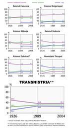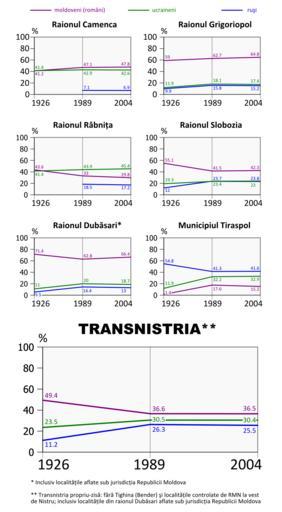 | Keywords: Transnistria evolutie etnica.png ro Grafic reprezentand evolutia principalelor 3 etnii din Transnistria la nivelul raioanelor si a mun Tiraspol dupa datele recensamintelor sovietice din 1926 si 1989 si a recensamantului organizat de autoritatile separatiste de la Tiraspol în anul 2004 en Graph representing the evolution of the 3 main ethnic groups in Transnistria at raion and municipality level according to the Soviet censuses of 1926 and 1989 and the census organized by the Transnistrian sepparatist authorities in 2004 own Andrein 2010-05 Ethnic groups in Transnistria |