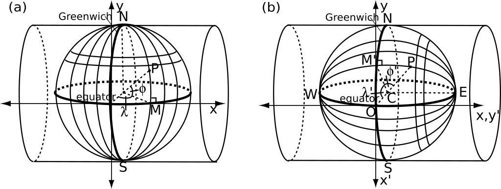 Keywords: Transverse mercator graticules.svg en Showing the normal and rotated graticules in the transverse Mercator projection own Peter Mercator 2010-02-07 Mercator projections SVG diagrams SVG diagrams in English