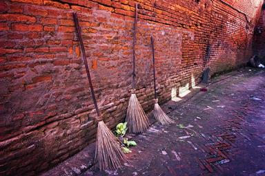 Keywords: travel nepal bhaktapur architecture building tourist street red brick urban house old tourism town city stone city street broom wall outdoor trash asia