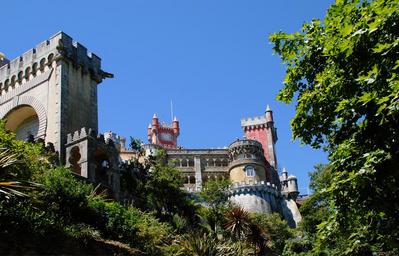 Keywords: portugal sintra fairy castle fairytale knight's castle castle tower antique battlements historically substantiate trees travel naturschuztgebiet historic preservation