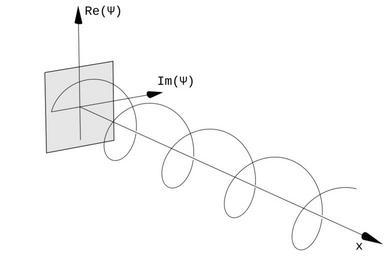 | Keywords: Travelling Particle Wavefunction.svg The complex wavefunction of a travelling particle This wavefunction extends to infinity This also depicts circularly polarised light although this image may be better Own drawing plotted in Mathematica edited in Inkscape Created with Inkscape 2007-02-12 inductiveload This image shows a wavefunction with a finite Gaussian wavepacket Mathematica Code This figure requires the use of Arrow3D which is not included in the StandardPackages as of Feb 2007 This can be obtained from Wolfram Research at http //library wolfram com/infocenter/TechNotes/4117/ this location The required packages are << Graphics` << Arrow3D`Arrow3D` The code is <pre><nowiki> wavefunction ParametricPlot3D t -Cos4t Sin4t t 0 7 BoxRatiosï˘ 4 1 1 ImageSize->500 Boxed->False Axes->False PlotPoints->600 ViewPoint-> 3 -2 1 PlotRange->All xaxis Graphics3DArrow3D -1 0 0 8 0 0 HeadSize->UniformSize 5 HeadColor->Black uaxis Graphics3DArrow3D 0 -1 0 0 3 0 HeadSize->UniformSize 5 HeadColor->Black vaxis Graphics3DArrow3D 0 0 -1 0 0 3 HeadSize->UniformSize 5 HeadColor->Black plane Graphics3DPolygon 0 1 2 1 2 0 -1 2 1 2 0 -1 2 -1 2 0 1 2 -1 2 Showwavefunction xaxis uaxis vaxis plane </nowiki></pre> 1D wavefunctions of free particles Plane waves |
