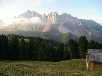 Keywords: treasure hut south tyrol rose garden view mountains sky rock massif italy