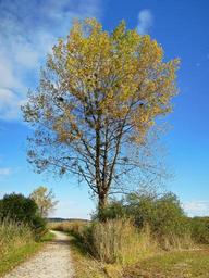 Keywords: tree autumn golden leaves mistletoe blue sky away mood scenic day