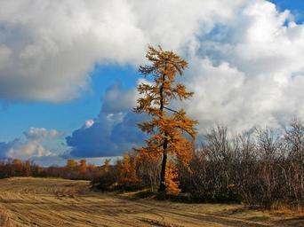 Keywords: tree autumn pine nature coniferous tree trunk landscape outdoors plant clouds blue sky sky trees