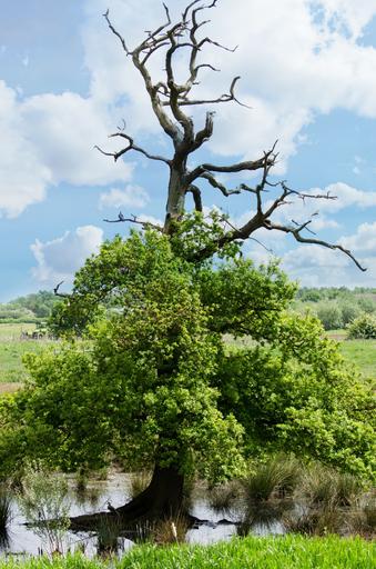 Keywords: tree branch branches nature leaves leaf water swamp wetlands reflection landscape background old wood alone wallpaper seasons spring summer sky blue cloud cloudy