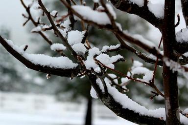 Keywords: tree branch snow melting winter tree branch