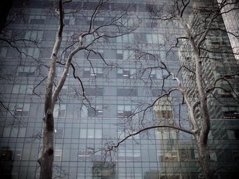 Keywords: tree building skyscraper reflection urban forest urban city contrast