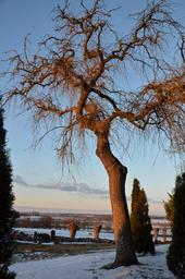 Keywords: tree cemetery evening sun winter park rest peaceful sky atmosphere snow cold blue nature