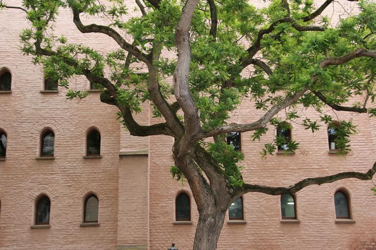 Keywords: tree courtyard facade branches urban aesthetic
