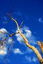 Keywords: tree dead old perch birds trunk glowing gold sunlight sky very blue