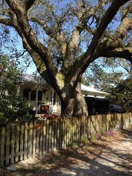 Keywords: tree fence house shade north carolina outer banks rural home scenic coast scenery branches limbs trunk picket moss