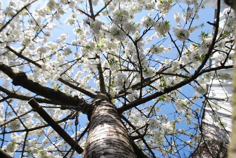 Keywords: tree flowers spring flower cherry fruit tree flowering sky garden big tree light branch nature white