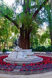 Keywords: tree flowers statues red sculpture decoration garden ornament