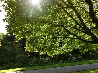 Keywords: tree garden england tregwainton back light green nature leaves park