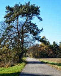 Keywords: tree individually pine autumn away road sky landscape mood autumn colours fall color meadow field green nature autumn mood romantic hiking walk holiday recovery leisure trail landscape way bavaria chiemgau atmosphere