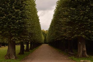 Keywords: tree lined avenue tree away road park landscape mirroring castle architecture