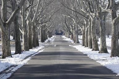 Keywords: tree lined flushing meadow park snow new york city queens