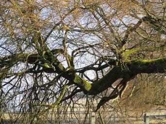 Keywords: tree log bark aesthetic bent branches moss gnarled bank lake constance thurgau