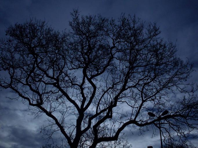 Keywords: tree night darkness sky forest background blue clouds dark light sunset shadow silhouettes