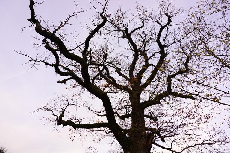 Keywords: tree oak aesthetic bark old oak nature tribe german oak sky sababurg castle autumn without leaves gnarled high
