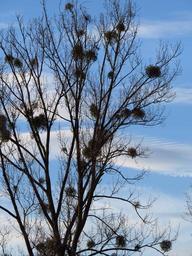 Keywords: tree poplar white poplar silhouette black mistletoe viscum sandalwood crop sky blue clear sunny hell warm beautiful clouds federwolke cirrus branches aesthetic crown parasite