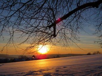 Keywords: tree road sunset wintry sun fields snowy winter cold aesthetic back light golden light mood