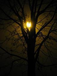 Keywords: tree silhouette street lamp night autumn fog light