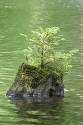 Keywords: tree stump water pond seedling spruce moss nature live wood in the water mystical mirroring